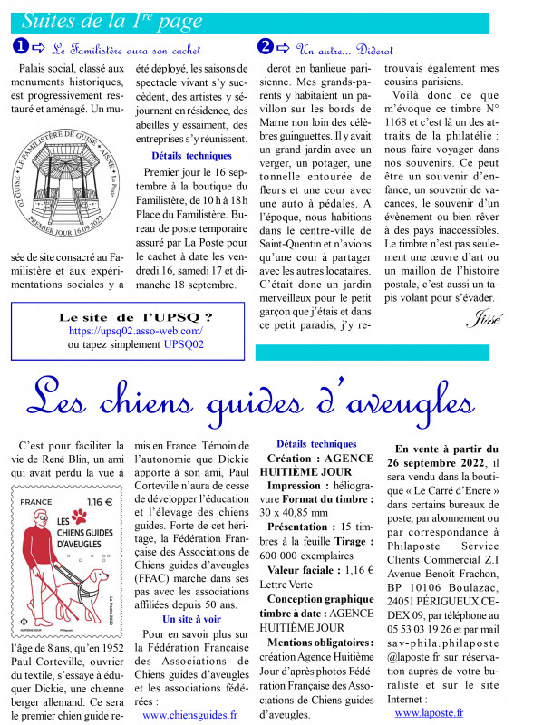 A l’occasion de la sortie du timbre « Familistère » le 19 septembre 2022, l’UPSQ vous propose les souvenirs suivants :